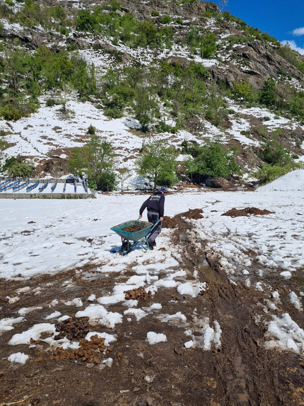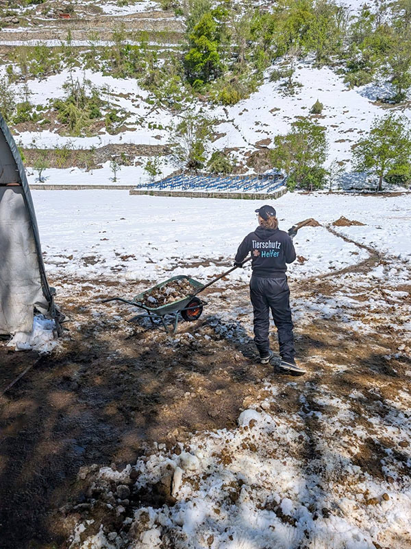 Doch das war noch nicht alles. Zu allem Unglück ist bei den Rindern auf dem Hof Allegro ein Weidezelt unter der immensen Schneelast eingestürzt und völlig zerstört worden. Dieses Zelt bot den Tieren Schutz vor Wind und Wetter – und muss nun dringend ersetzt werden. Die Kosten dafür belaufen sich auf rund CHF 6’000.00.